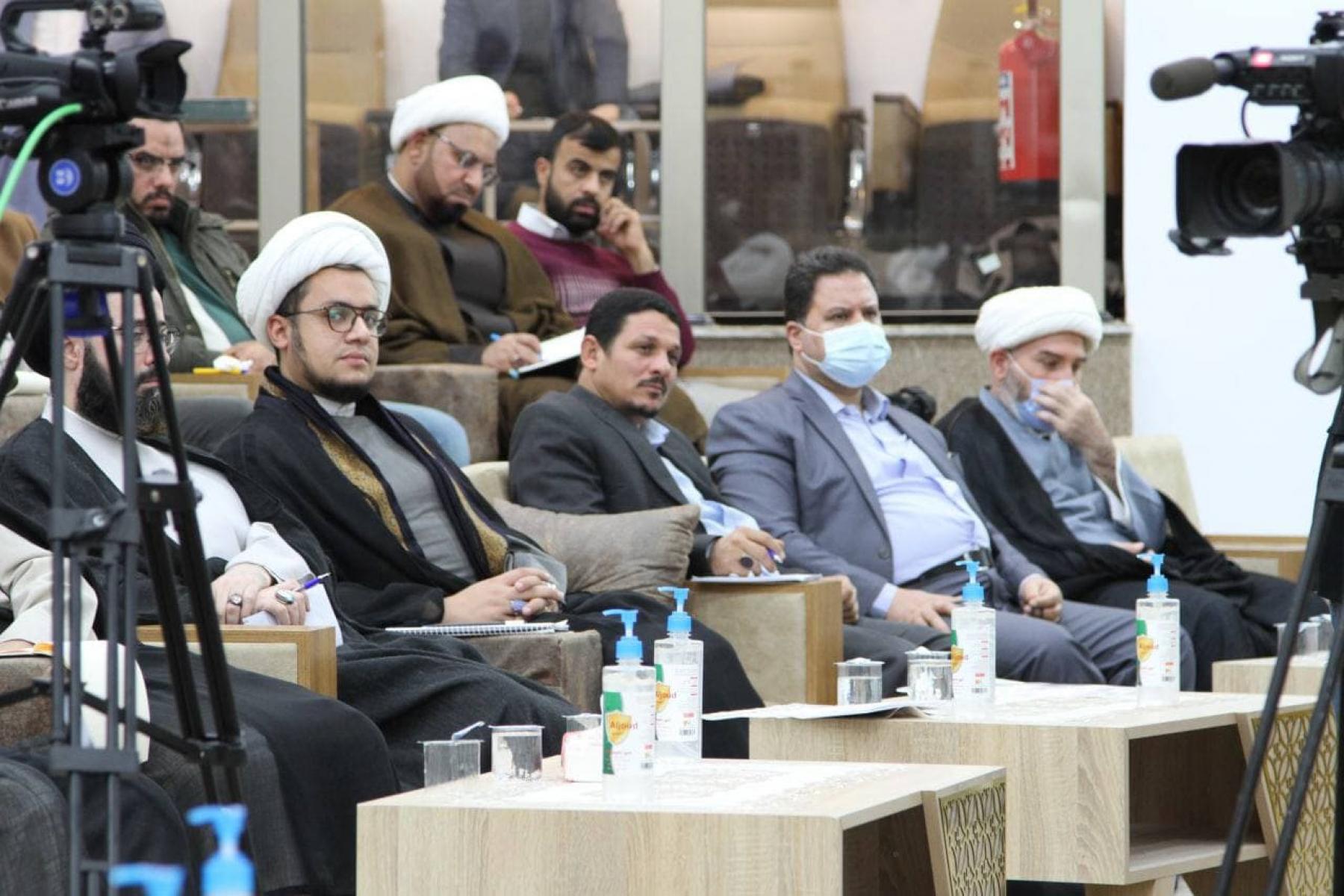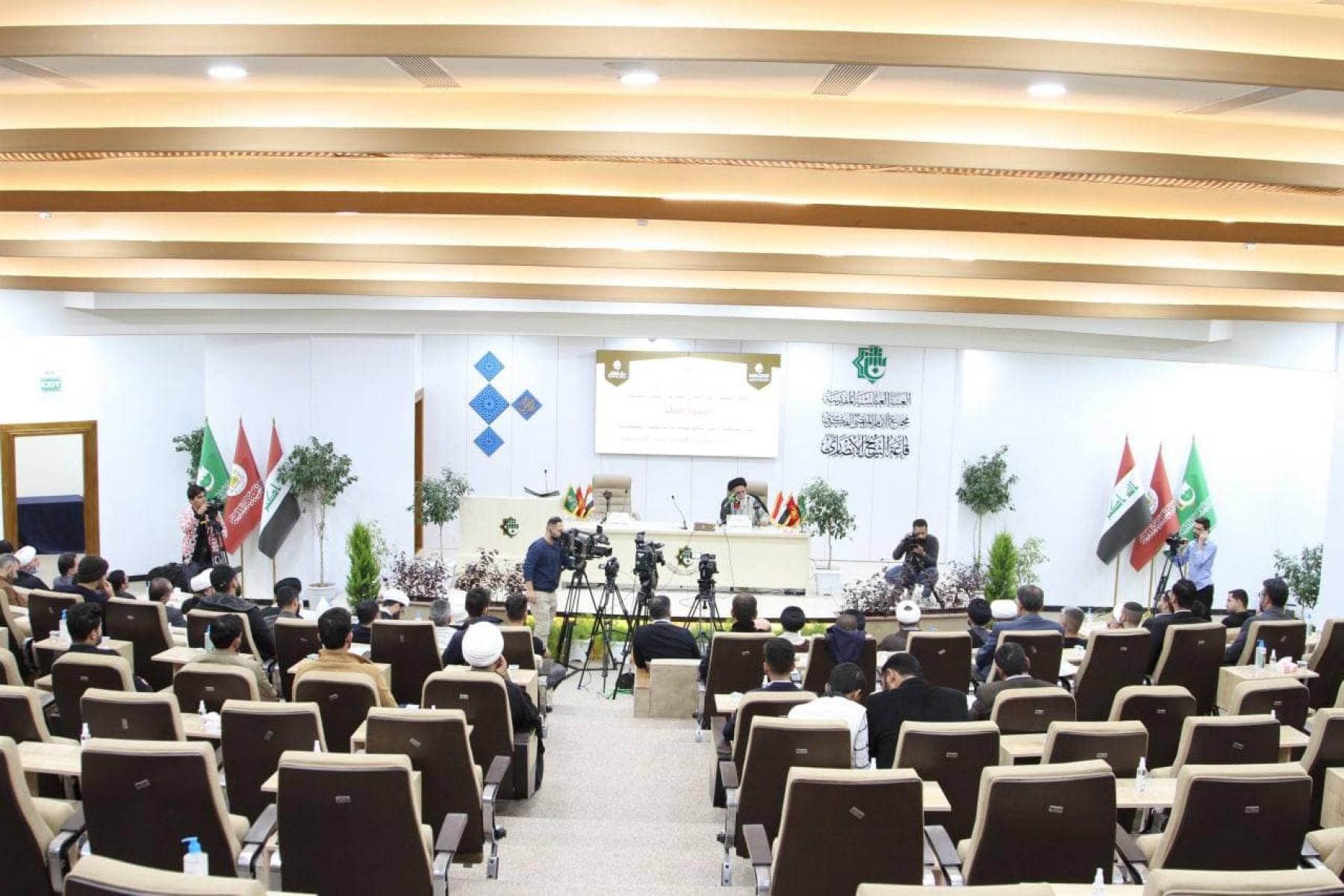 لليوم الثَّالث على التَّوالي انطلق وفد من مركز العميد الدولي للبحوث والدّراسات؛ التَّابع لقسم الشؤون الفكرية والثقافية في العتبة العبَّاسية المقدَّسة، وكان في مقدمتهم الأستاذ الدكتور "عباس الفحام" لحضور الدورة التَّخصصية التي وسمت بـ(الأمنُ الفِكريُّ في القُرآنِ الكَريمِ والسُّنَّةِ المُطهَّرَةِ) التي يقيمها معهد القرآن الكريم في النجف الأشرف، وذلك مساء يوم الأربعاء الموافق 24/11/2021 وعلى قاعة الشيخ الأنصاري؛ في مجمع المرتضى(عليه السلام)، ومحور اليوم الثالث جاء بـعنوان:(الأمن الفكريّ في المؤسسات الدينيّة الفكريّة) التي حاضر فيها سماحة السيّد أحمد الاشكوريّ(دام تأييده)" مبينًا: " في البدء نشكر هذه المبادرة الكريمة من العتبة العبَّاسية المقدَّسة؛ لإقامتها مثل هكذا محاضرات فكرية، تهم المجتمع المتعطش اليوم الى مثل هذه القضايا الفكرية؛ بسبب انخفاض مستوى الوعي في المجتمع، وانقباض حالة الوعي؛ لذلك نحتاج الى مزيد من العلم، والعمل المنظم والدؤوب في نشر ثقافة الوعي في مجتمعاتنا، إذ لا سبيل لنا لأجل إنقاذ البلد سوى نشر الوعي، وحينما نكون بعيدين عن دائرة الوعي فنحن بعيدون عن كلِّ شيءٍ مرتبط بالحضارة والقيِّم والثقافة الأصيلة".